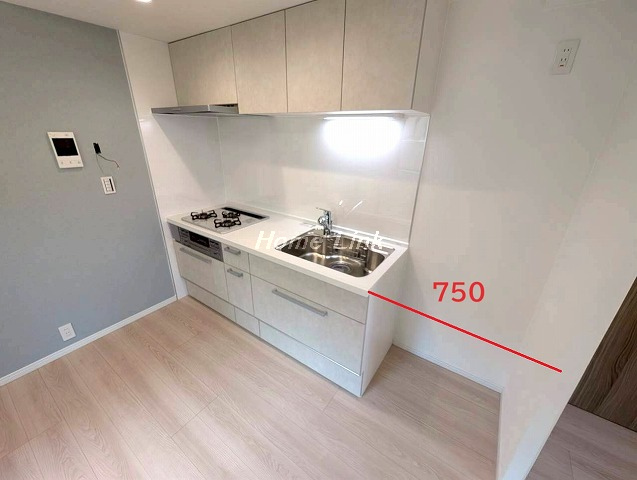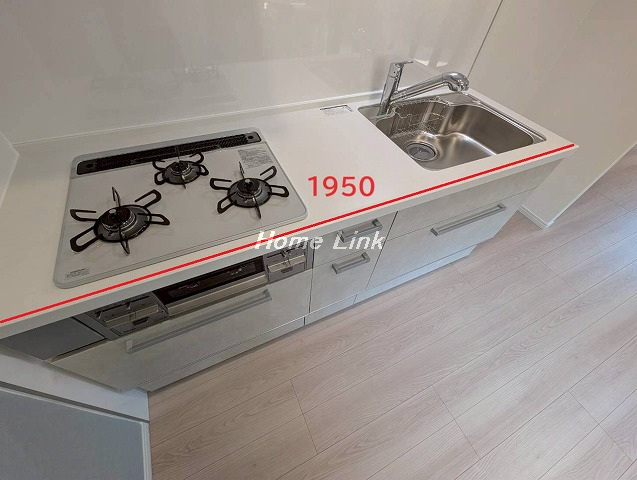 【計測サイズ】(キッチン幅)1950(浴室)1316サイズ(洗面台幅)750(冷蔵庫スペース幅)750