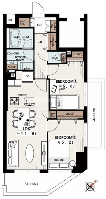 ●2面バルコニー