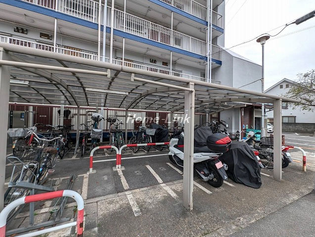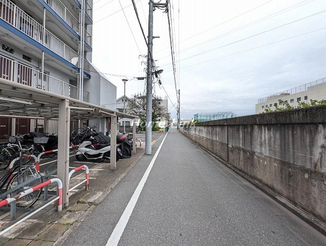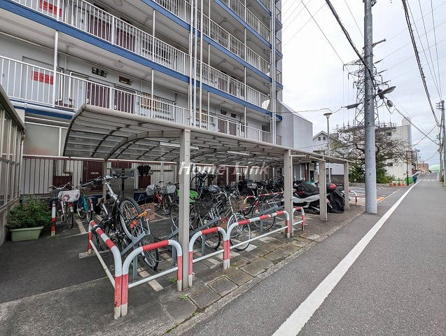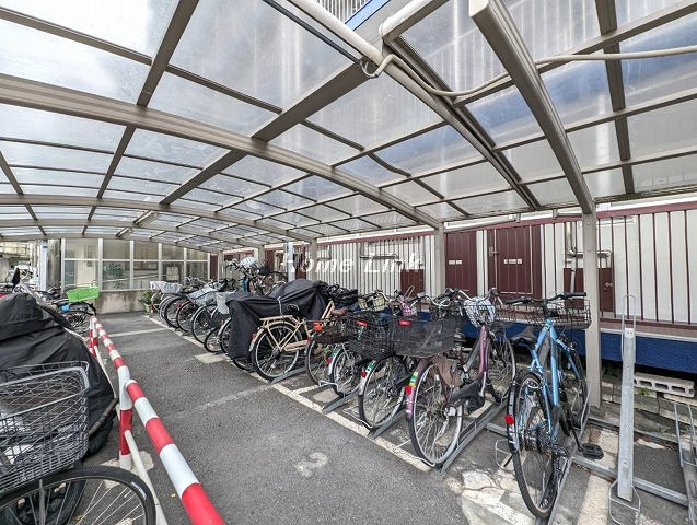 新河岸川を背にした開放感のある風通しのよい立地です。管理事務所には管理人さんがおり、エントランスはオートロックになっています。来客用駐車場と介護サービス車両用の駐車スペースがそれぞれ1区画ずつ。駐輪場およびバイク置場も整備された屋根付きです。